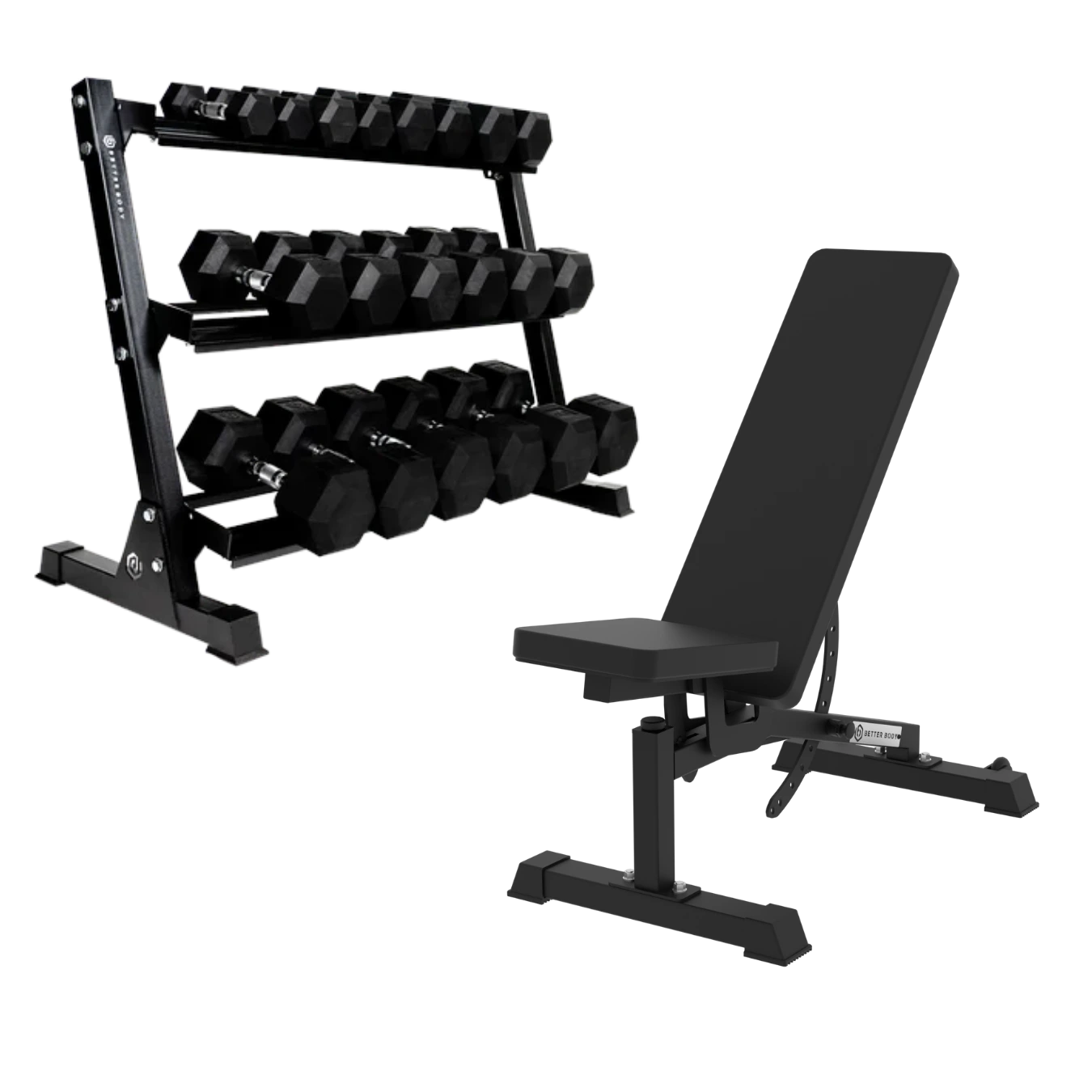 Better Body Rubber Hex Dumbbell Set & Bench Bundle