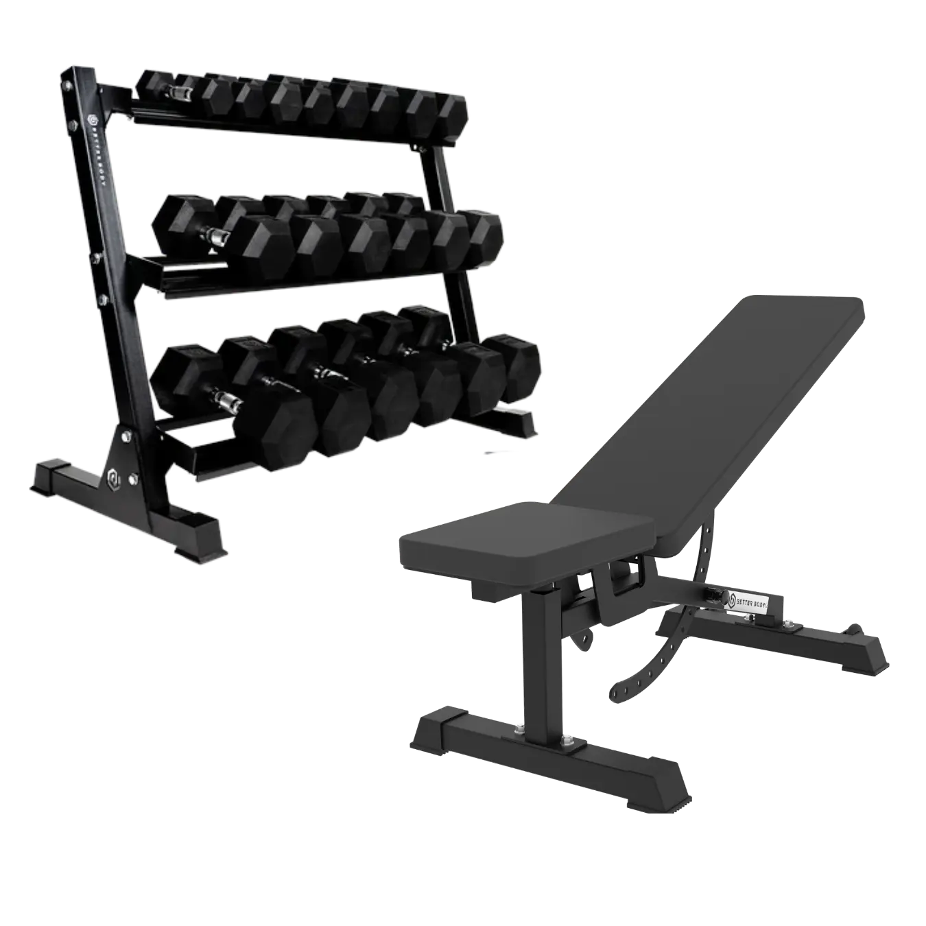 Better Body Rubber Hex Dumbbell Set & Bench Bundle