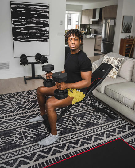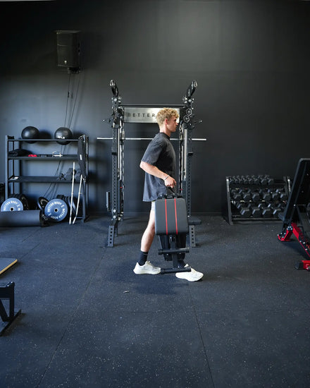Its modern, space-saving design makes it a functional and aesthetic addition to any home. Whether it’s open and ready for tomorrow’s session or tucked away on a rest day, the Foldable Bench is always prepared for more.