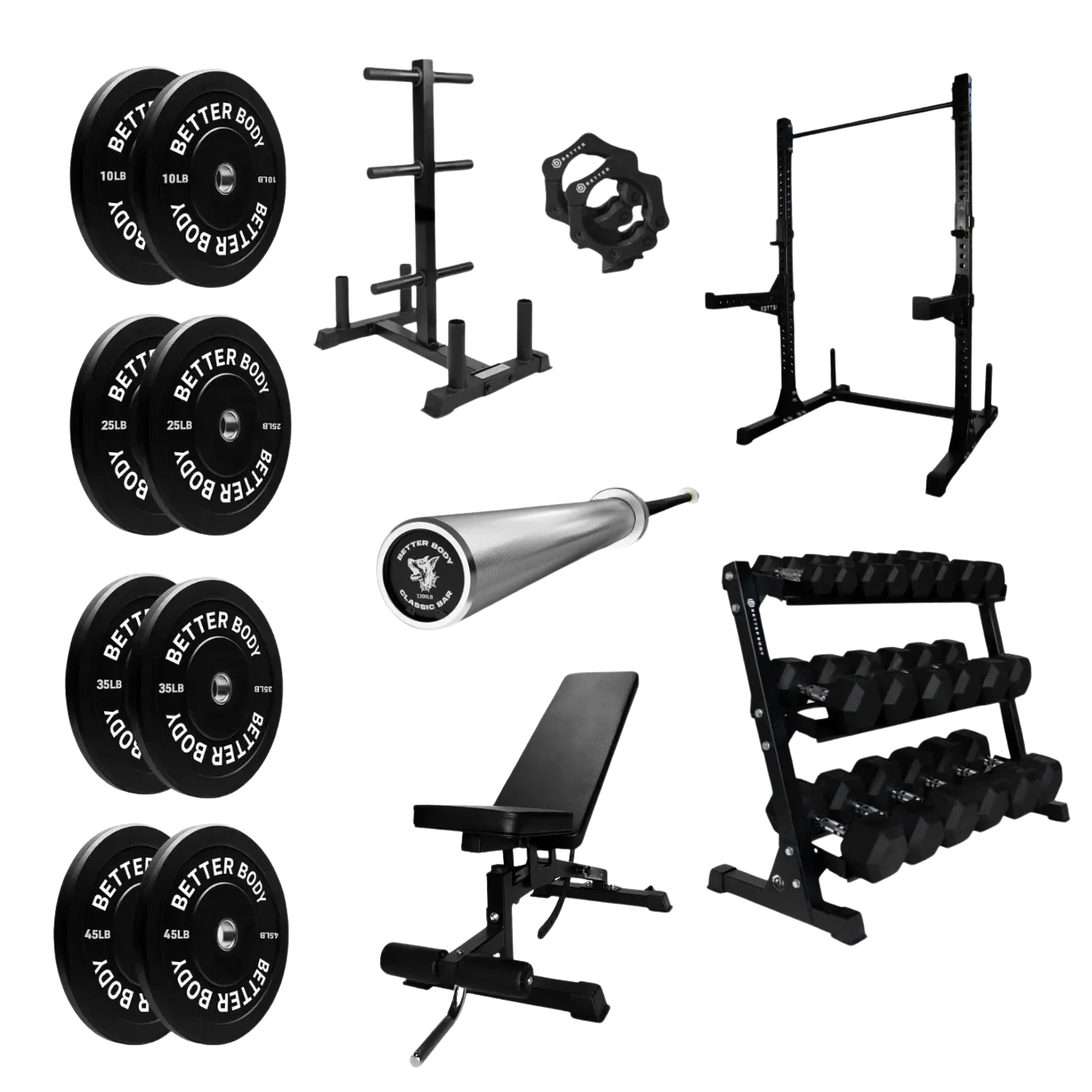Simplify your fitness journey with the Better Body Strength Bundle—an all-in-one setup designed to equip your home gym with everything you need for powerlifting, strength building, and endurance training. No more endless scrolling or mismatched equipment; this bundle has been thoughtfully curated for seamless integration, functionality, and quality.