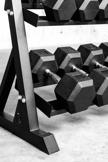 The Better Body Rubber Hex Dumbbells deliver durability, performance, and versatility for every level of lifter. Available in pairs from 5 to 110 lbs (in 5 lb increments), these dumbbells are perfect for building strength and targeting specific muscle groups.