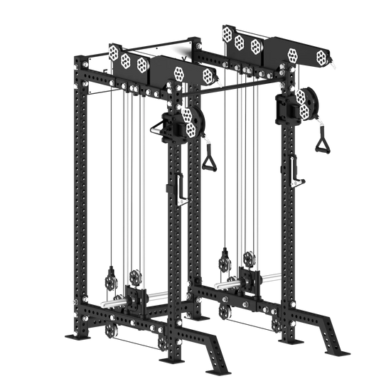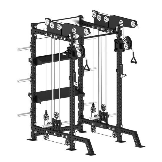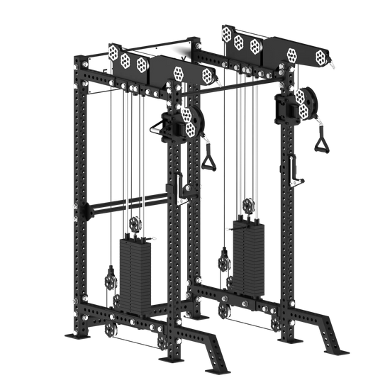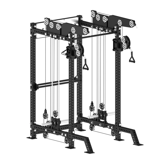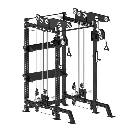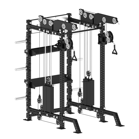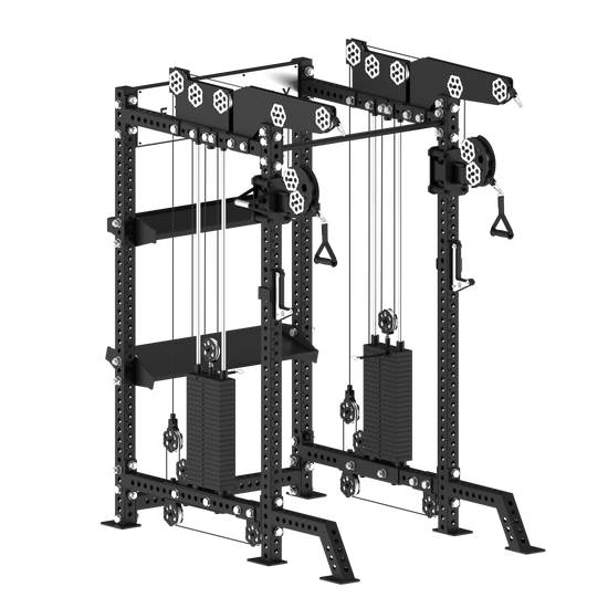 Both versions feature adjustable cable handles that glide smoothly up and down, giving you the freedom to hit lat pulldowns, rows, tricep pushdowns, and more. The center foot plate ensures solid footing and proper form during upper-body work, making this system a game-changer for serious lifters.